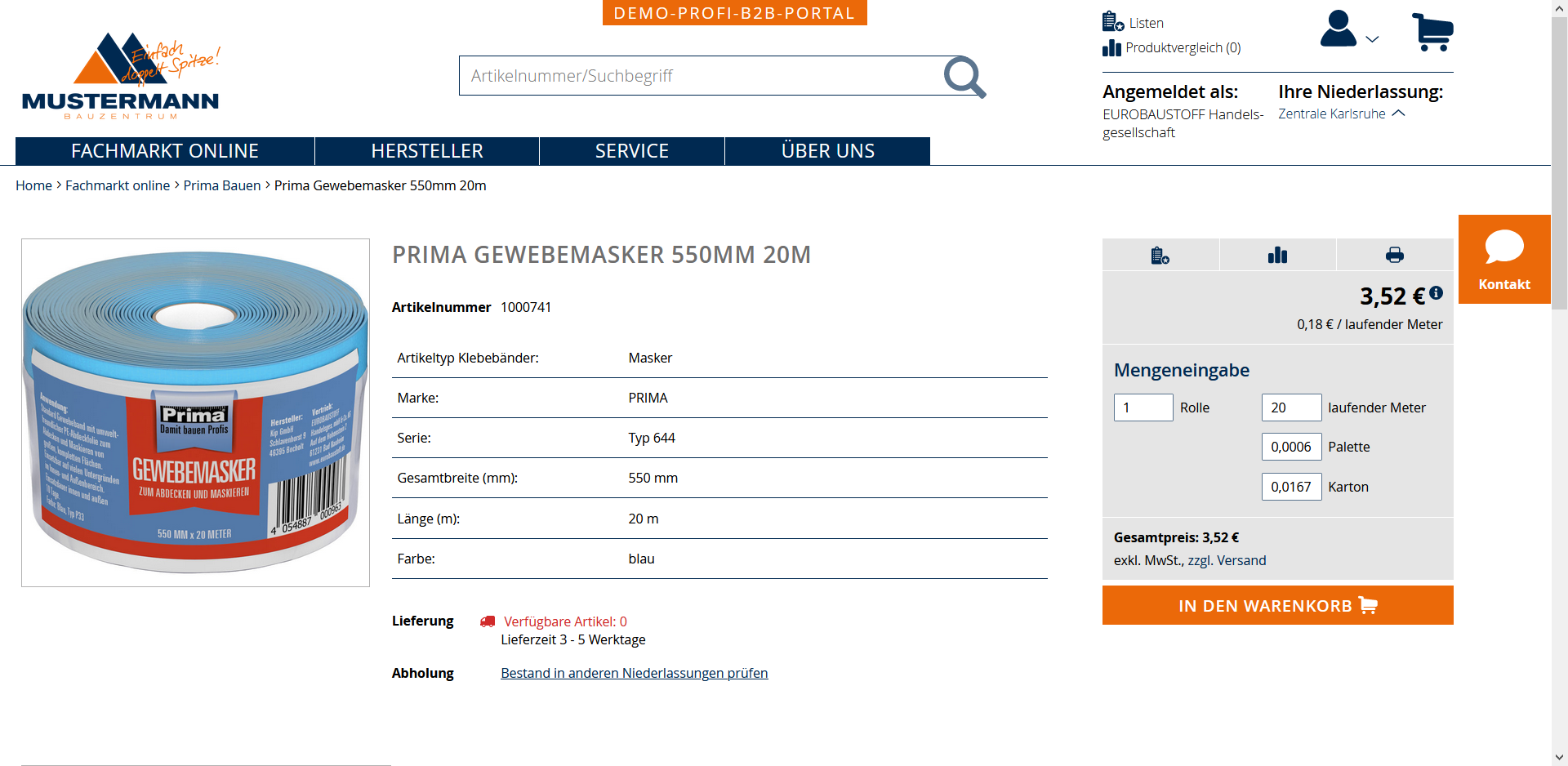 - Gehen Sie mit diesem Artikel zur Kasse und fragen Ihren Ansprechpartner nach Ihrem Kunden- bzw. Angebotspreis und eventueller Mengenstaffeln, so entspricht dies der Ansicht auf der Artikeldetailseite.